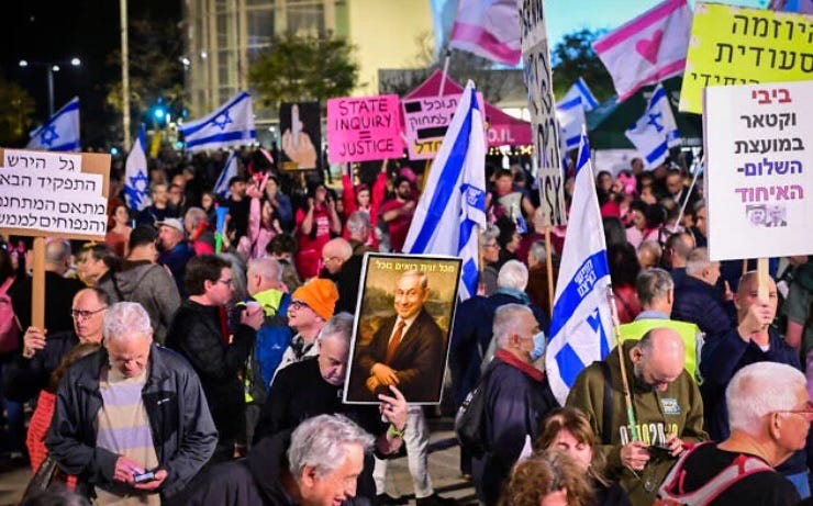 According to the Times of Israel, on Jan 31, Saturday night, tens of thousands of protesters, Israeli Arabs together with Jewish Israelis, took to the streets of Tel Aviv in an outpouring of frustration against the government. They marched from Hostages Square to Habima Theater, waving black flags and accusing the state of leaving its citizens for dead.