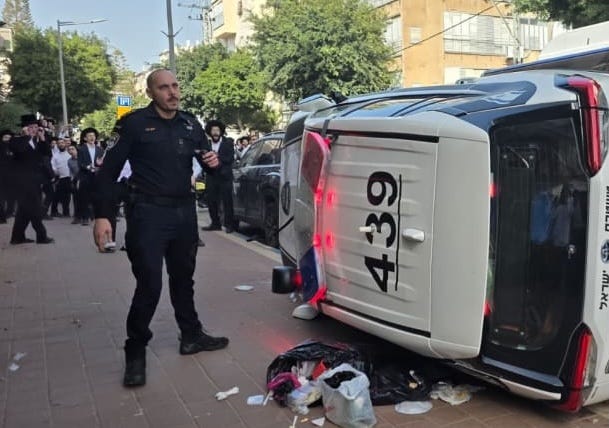 Also, according to the Jerusalem Post, on Sunday Feb 15th, a riot broke out in the ultra-orthodox neighborhood of Benei Brak near Tel Aviv. Two female soldiers who were shopping in a local grocery store while in the neighborhood visiting an ultra-Orthodox IDF soldier. They were set upon by a mob and had to be rescued by police. Video footage showed mostly ultra-Orthodox teenagers and young men chasing the women. A police car was overturned and a police motor scooter set ablaze. The Jerusalem Post reported that 28 Haredim (ultra-Orthodox) were arrested. One policeman was injured. Those arrested were all released. Some to house arrest.