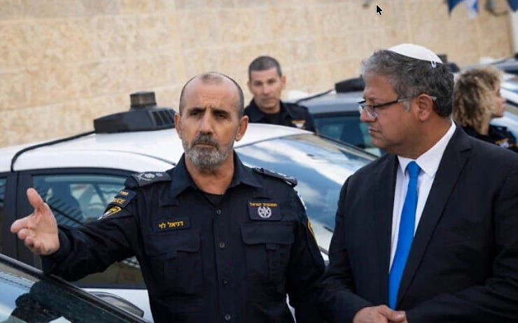 Police Chief Danny Levy (left) Minister Ben Gvir (right)