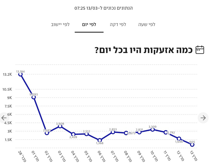 On Thursday March 12th, according to the Times of Israel, six salvos of Iranian missiles targeted Israel, from Eilat in the south to Kiryat Shmona in the north, sending millions of Israels into bomb shelters.